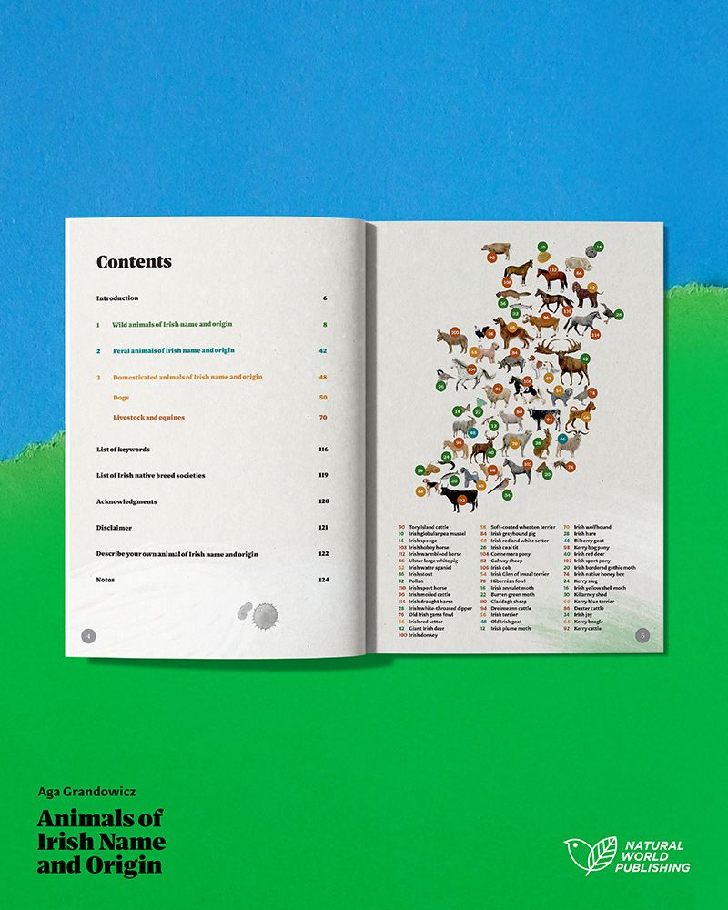 Natural World Publishing is proud to introduce Animals of Irish Name and Origin, a richly illustrated and meticulously researched book by Aga Grandowicz. This landmark publication explores Ireland’s wildlife through the lens of taxonomy, language, history, and place. Animals of Irish Name and Origin brings together forty-nine animals whose names and identities are deeply rooted in Ireland, offering readers a visually striking guide to species that have shaped, and been shaped by the island’s landscape and culture.